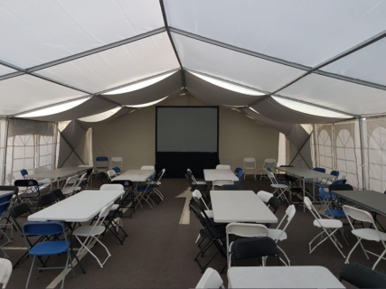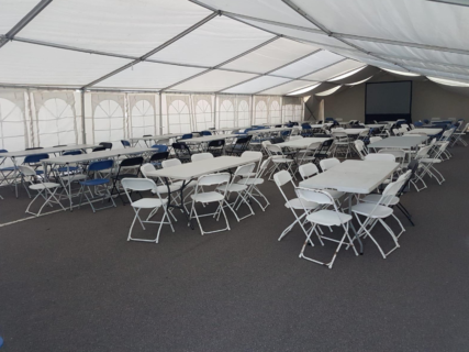 KP Nuts put on an event for all of their 200 staff members, and enlisted the help of Your Event Cover to install a 9m x 21m Fusion Modular Marquee, complete with 200 chairs and 20 large tables. We used our vast network of event partners to put the organisers in touch with firms who would supply a large projector and screen, plus a refrigerated trailer for the catering.