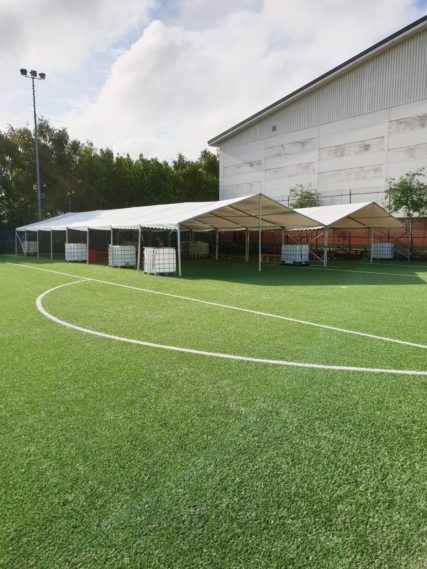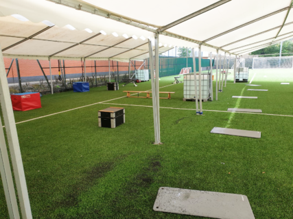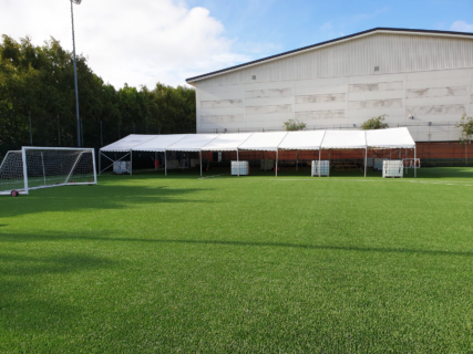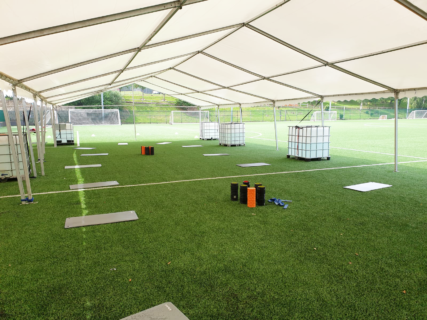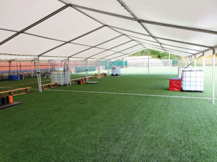 During the Covid-19 Pandemic restrictions when indoor space was limited, we were hired by Sheffield United Football Club to provide some coverage to help the team to stay fresh and fit. We installed two 9m x 24m modular marquees side-by-side to create a massive 18m x 24m gym space for the team to complete light training and small drill sessions.